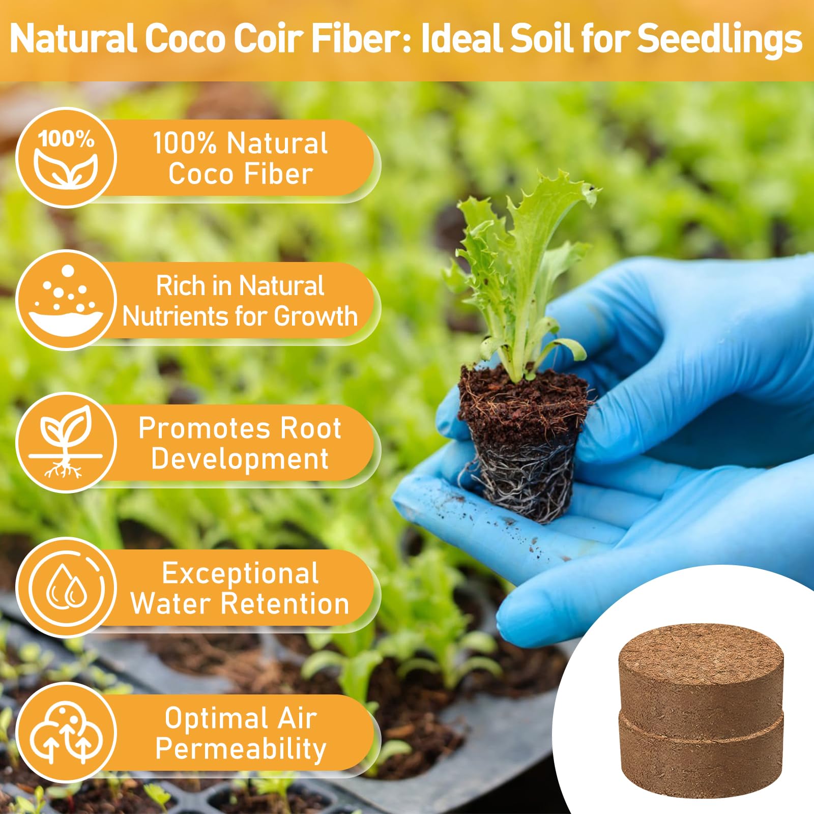 - Easy to Use: Simply place the coco fiber pellets in a seedling tray or pot, add about 0.05 qt of water per pellet, and wait for full expansion. Squeeze out excess water, shape the potting soil neatly, then place your seeds or plants in the center. For transplanting, just move the entire coco coir block directly into a larger pot or garden bed, with no need to remove the growing medium.