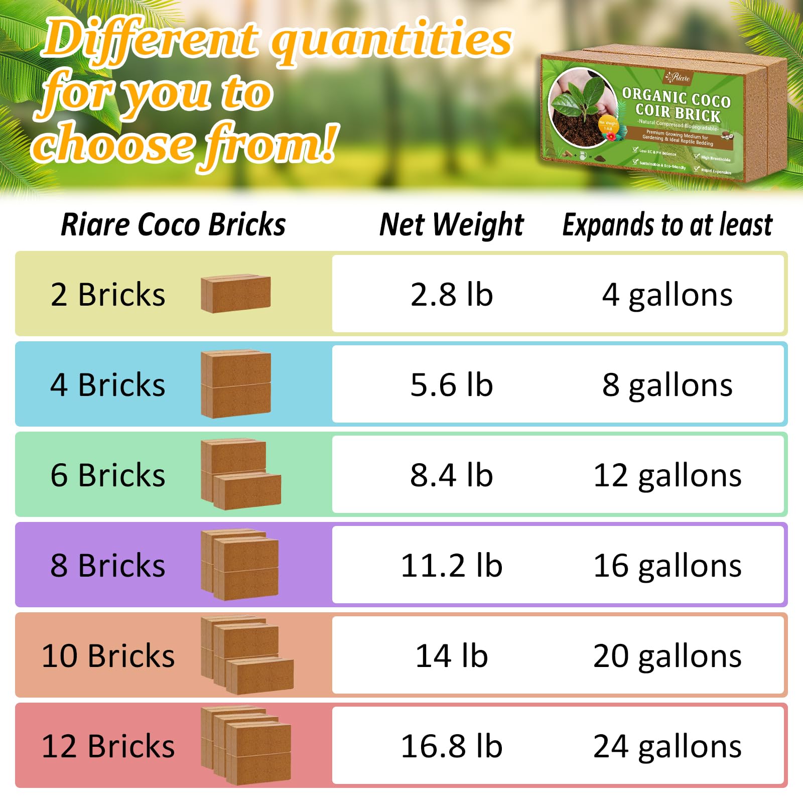 - Organic Coco Coir Bricks: Like to garden? Get this. Awesome coconut peat brick will promotes healthy root growth! These seed starter soil are lightweight and absorbent, easy to manage even for garden beginners. No problems with overwatering and rotton root, making your garden soil lighter and keeping it moist longer