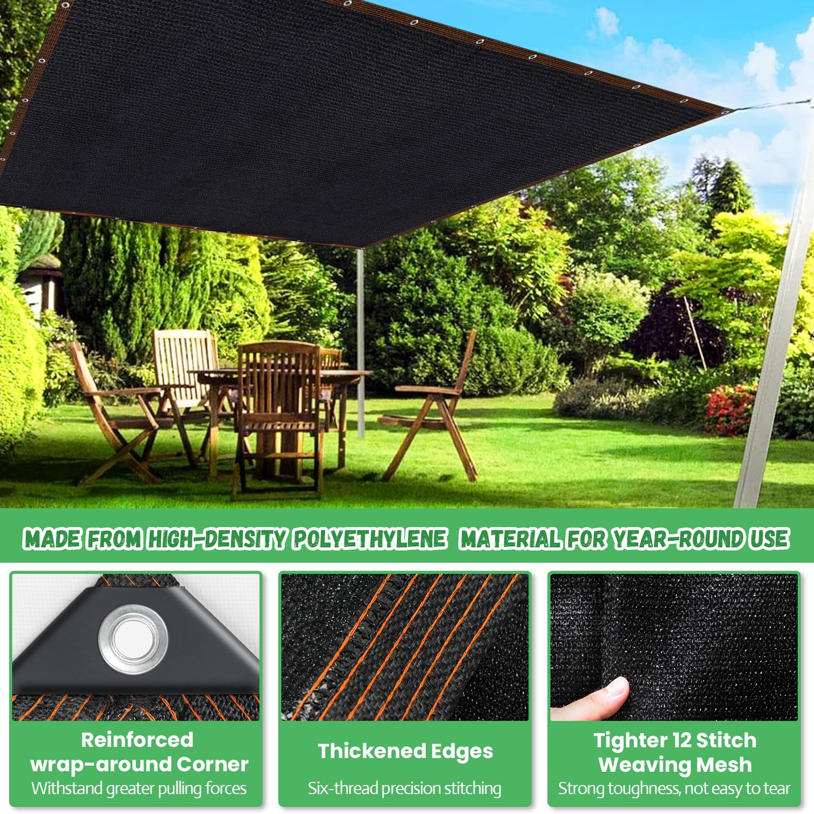 - Sturdy and Tough: Our shade net cover feature the tighter 12 stitch weaving mesh protects your privacy while air can still circulate, creating a comfortably cool place to shade people or plants. Equipped with solid copper metal grommets on the edge, sturdy six locking edges and four reinforced corners allow the mesh to withstand greater tensile strength and are less likely to break